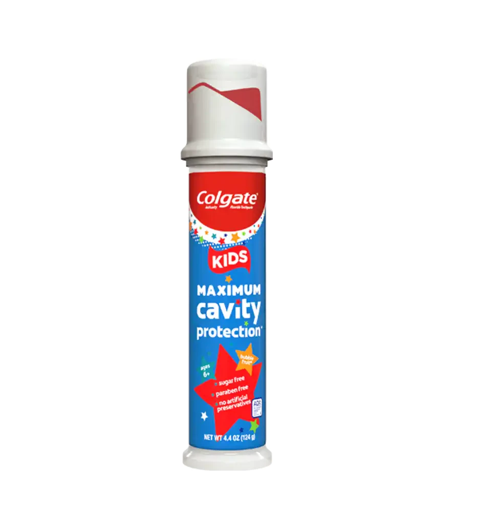 Colgate® Kids Toothpaste Pump with Fluoride, Anticavity & Cavity Protection Toothpaste, For Ages 6+, Mild Bubble Fruit Flavor is a toothpaste for kids that helps brush away buildup to maintain a healthy smile. Made especially for growing adult teeth in kids ages 6 and up, this cavity protection kids toothpaste helps restore and strengthen weak spots on enamel and fights plaque while preventing cavities with regular brushing. In addition to the kids toothpaste pump design made for easy dispensing, the mild bubble fruit flavor in this toothpaste encourages regular brushing in kids.