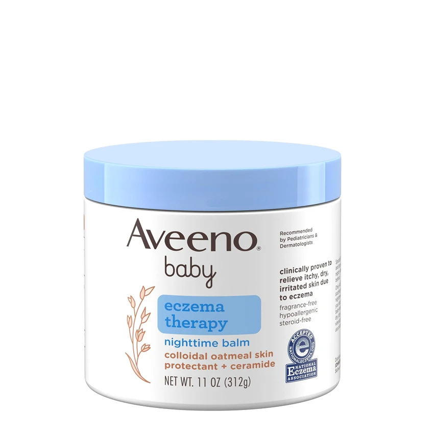 Aveeno Baby Eczema Therapy Nighttime Relief Body Balm helps soothe baby's dry, itchy skin with long-lasting moisture. Similar to the white vernix coating, Aveeno Eczema Therapy Balm forms a protective barrier to strengthen the skin by sealing in moisture, ultimately keeping impurities out. Gentle enough for daily use on sensitive skin, hypoallergenic baby eczema balm combines Triple Oat Complex, soothing moisturizers with antioxidant & prebiotic properties, Lipids including Ceramides, key components to build baby's skin barrier, & Glycerin, which helps attract water to smooth the skin's surface & offers skin restoring & prebiotic properties, for effective baby eczema relief. Clinically proven Aveeno Baby Eczema Therapy Balm moisturizes to relieve & help prevent dry, itchy skin & has been awarded the National Eczema Association Seal of Approval. Moisturizing face & body balm recommended by pediatricians & dermatologists is steroid, fragrance, paraben, phthalate & phenoxyethanol free. An independent clinical has shown Aveeno Baby Eczema Therapy Balm is suitable to use on newborn's skin as early as the second day of life, before the onset of rashes and dryness.