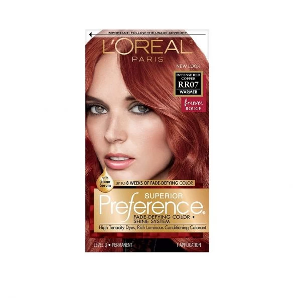 Product Description Of L’Oreal Paris Superior Preference Fade-Defying + Shine Permanent Hair Color, RR-07 Intense Red Copper