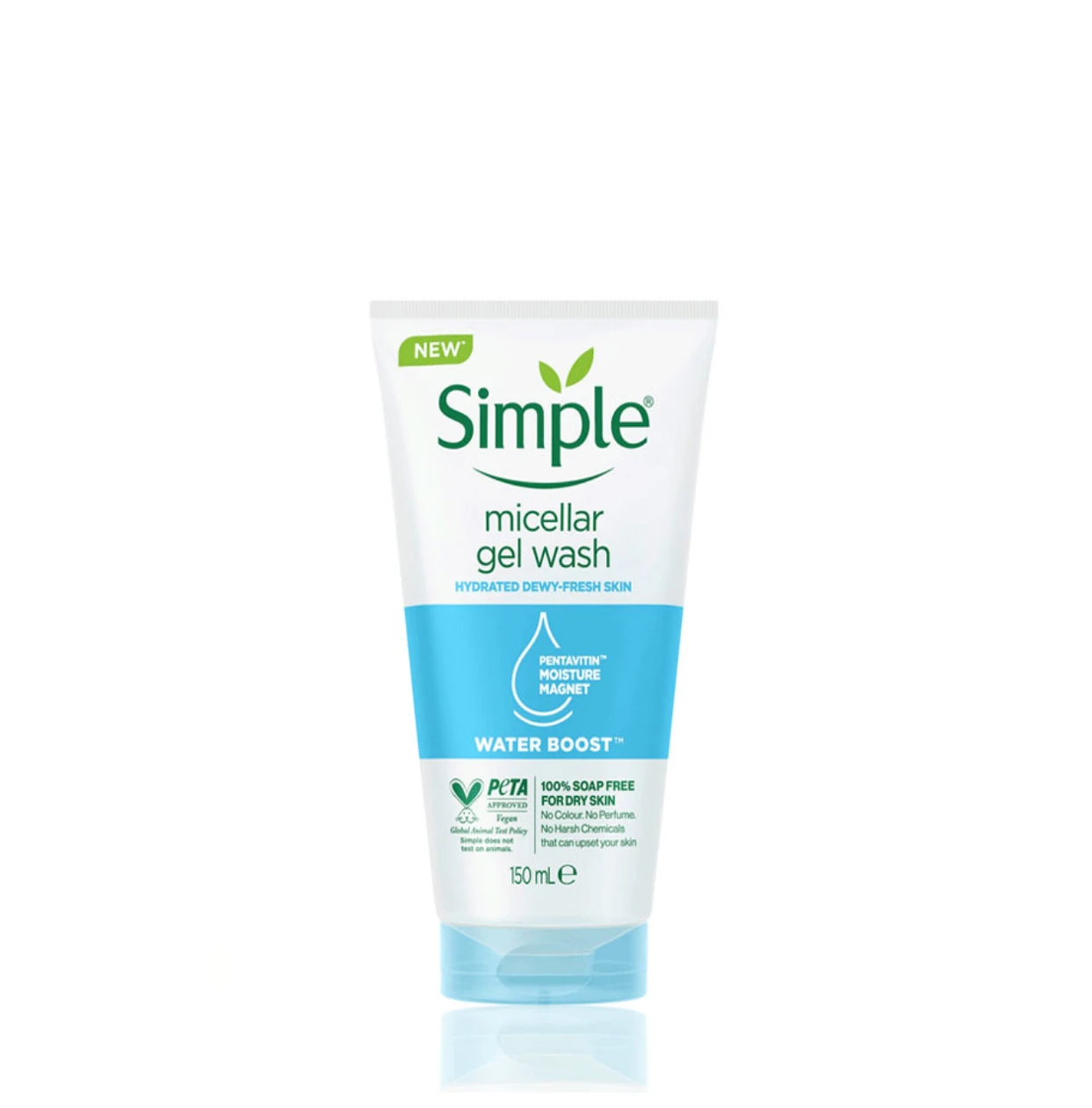 Simple Water Boost Gel Wash uses micellar water technology in a light face wash form to help combat dehydrated & dull skin. Suitable for even sensitive skin.
