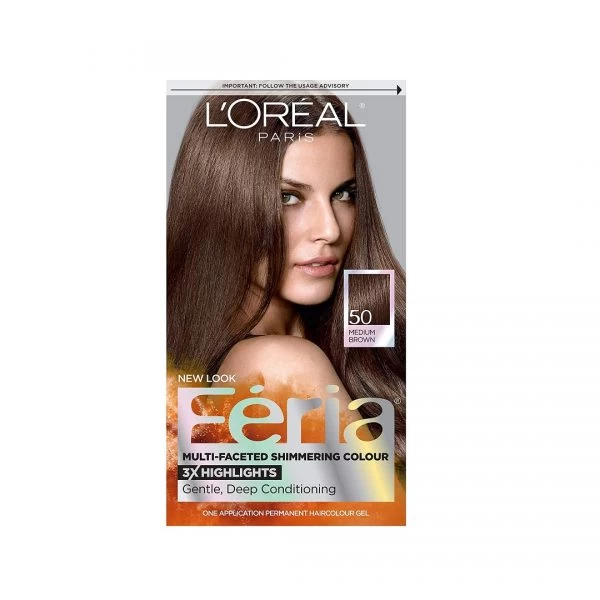 Product Description Of L’Oreal Paris Feria Multi-Faceted Shimmering Permanent Hair Color, 50 Havana Brown Medium Brown