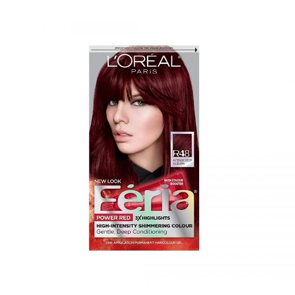 L’Oreal Paris Feria Multi-Faceted Shimmering Permanent Hair Color, R48 Red Velvet Intense Deep Auburn